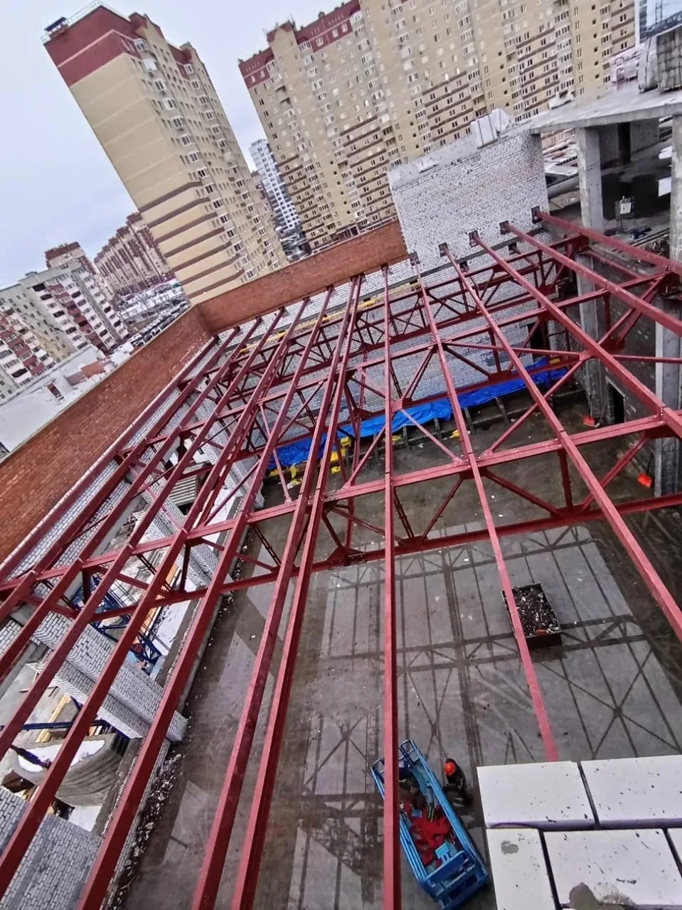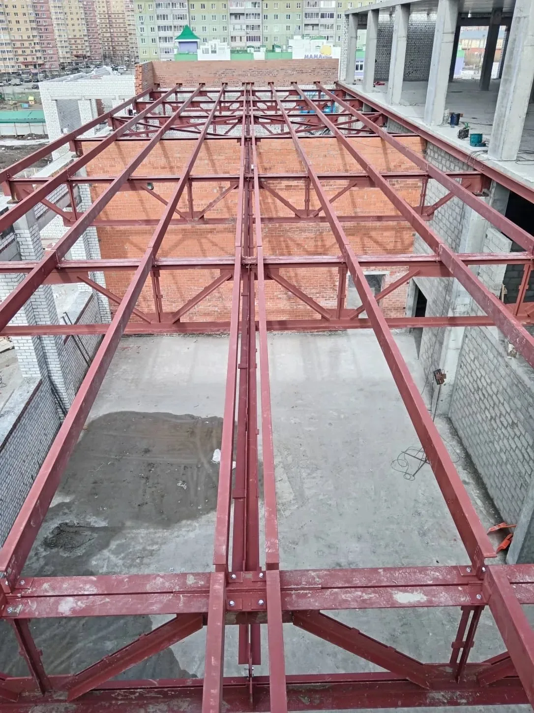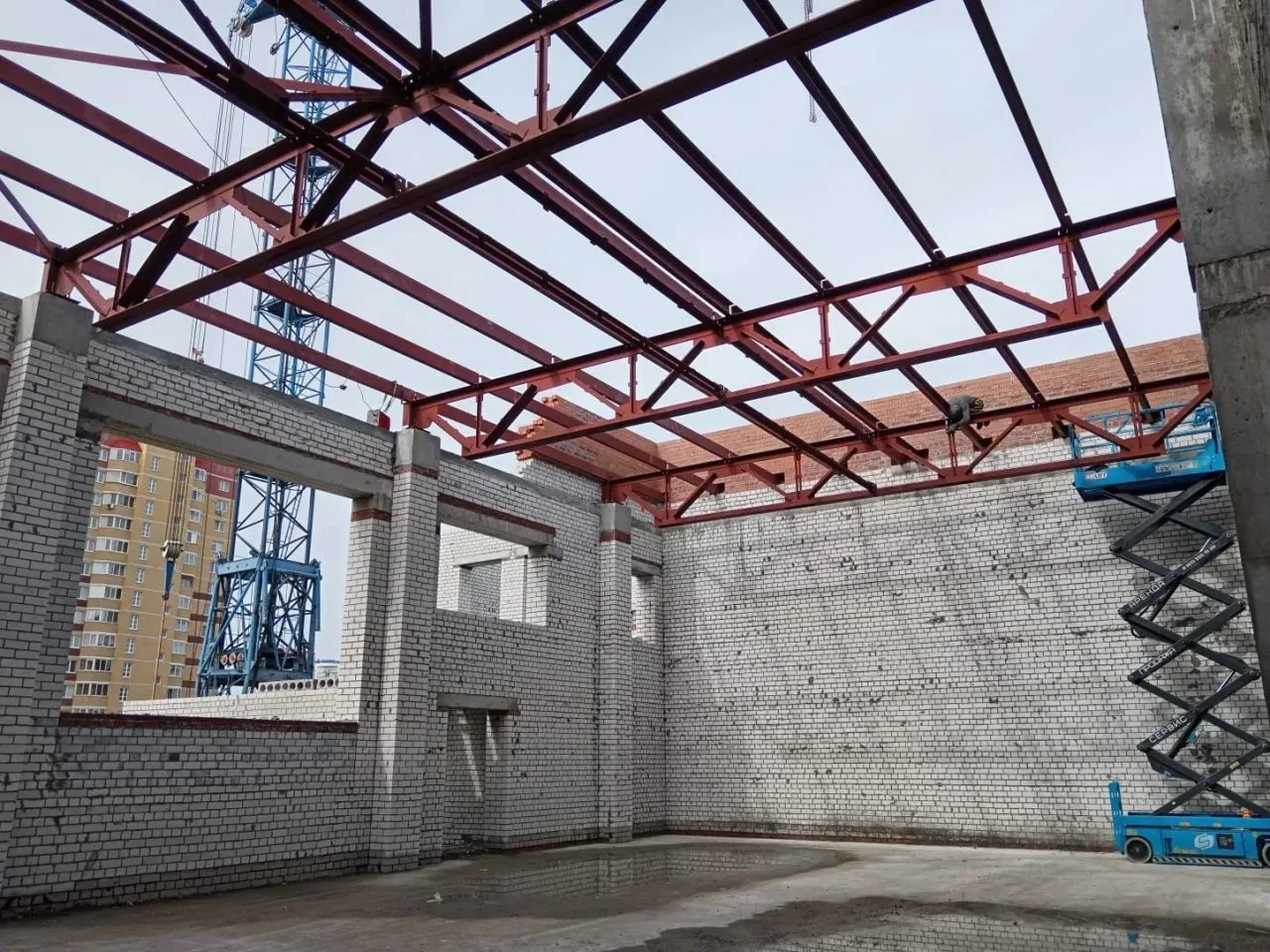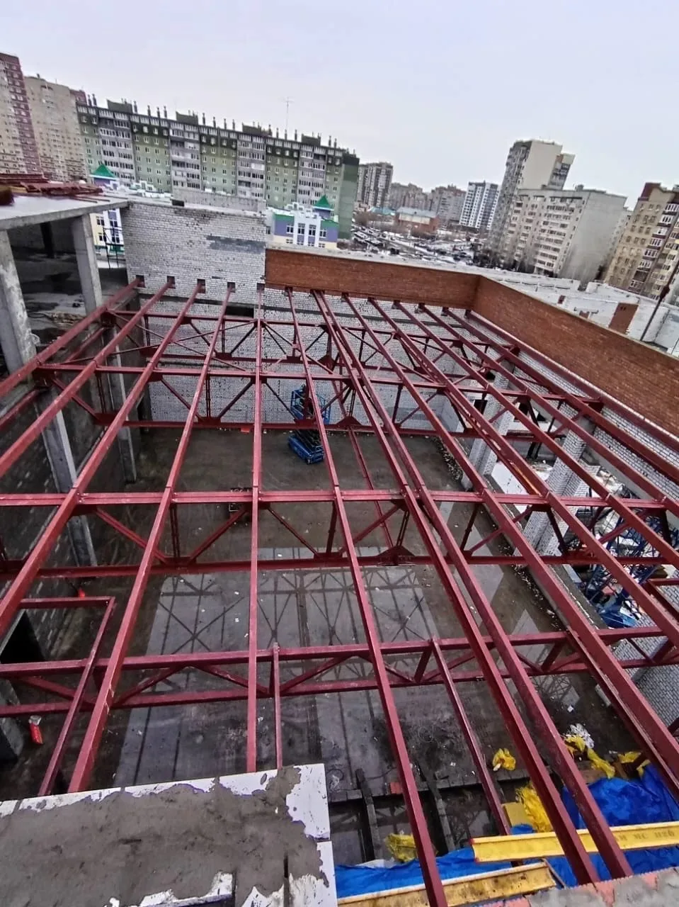 Главная › Ангары из металлоконструкций в России: наши реализованные проекты | Строительство под ключ › Кровельные фермы для школы г. Тюмень, мкр. Ямальский